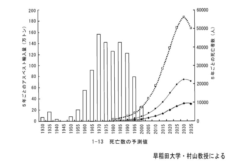 このため、将来これらの建物の建て替え時期には数十万、数百万といったアスベスト健康被害者がでるのではないかと心配されています。