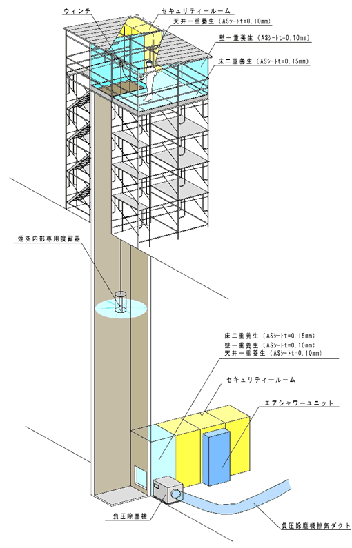 改修工事(煙突の継続使用)では、封じ込め工事を行う。