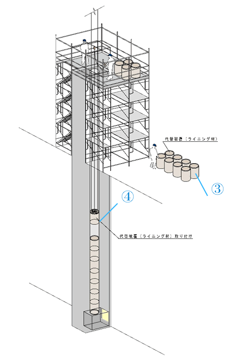 • 煙突を再利用する場合、断熱材復旧も考慮すると、工期が掛かるため、煙突の稼働を長期間停止しなければならない