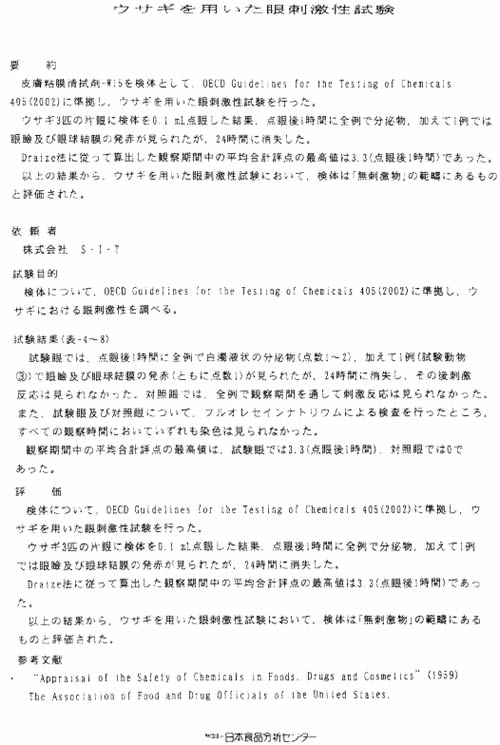 ・経口毒性検査 ・皮膚感作検査(かぶれ) ・累積皮膚刺激検査