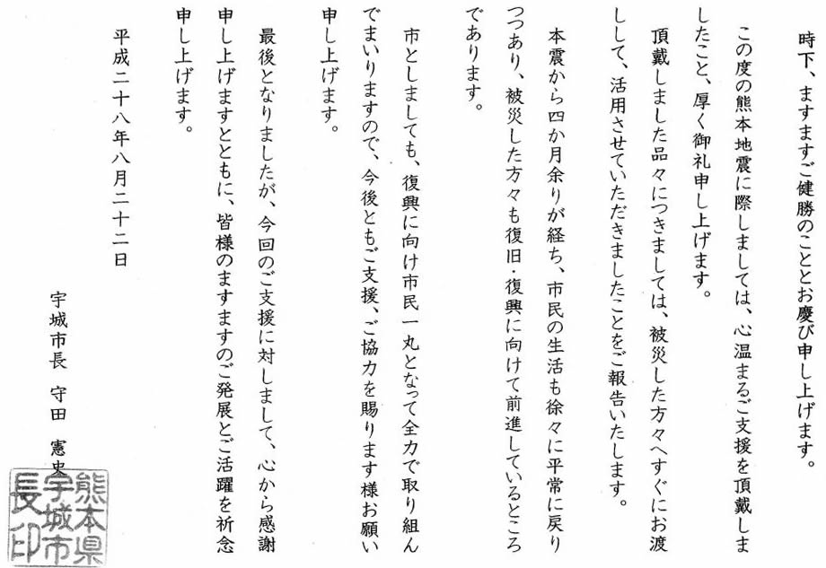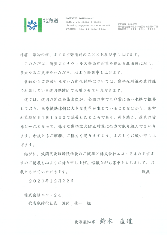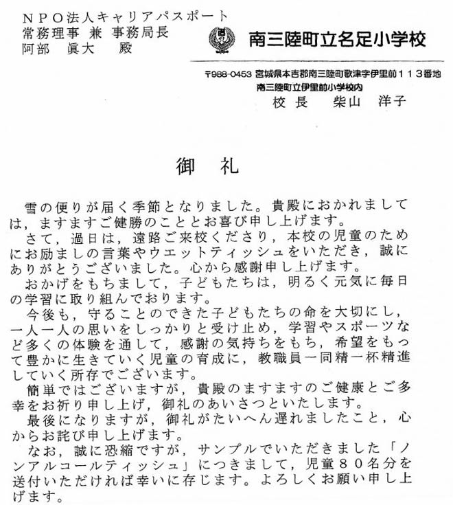 弊社が無償で提供したファンクションウォーターのウェットティッシュについての感謝のお言葉をいいただきました。