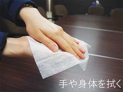 ファンクションウォーター入りウエットティッシュを1枚マスクの内側に入れることで、外部からのウイルス感染防止、周囲への飛沫感染防止や消臭にも効果が期待出来ます。