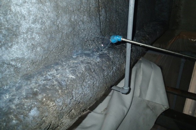 弊社製品である「ハクリロック」は、劣化したロックウールに塗布することで、液剤が硬化し飛散防止や剥離防止効果を発揮します。